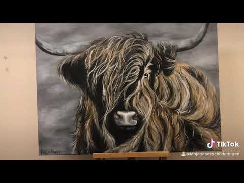 Tiktok schotse Hooglander schilderij - Tanja Papez Muurschilderingen - YouTube